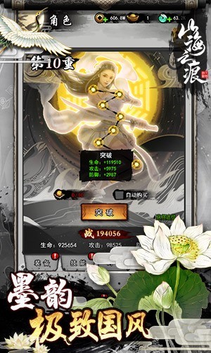 《山海之痕》是一款ARPG+养成类的h5放置游戏,以水墨国风的美术风格,搭配最新的3D引擎,搭建出美轮美奂的洪荒世界,并实现了多人同时在线即时战斗模式。更有仙门之争,宗门之战,鏖战天庭,横扫大荒等PVP与PVE玩法,带来一个与众不同的洪荒世界。